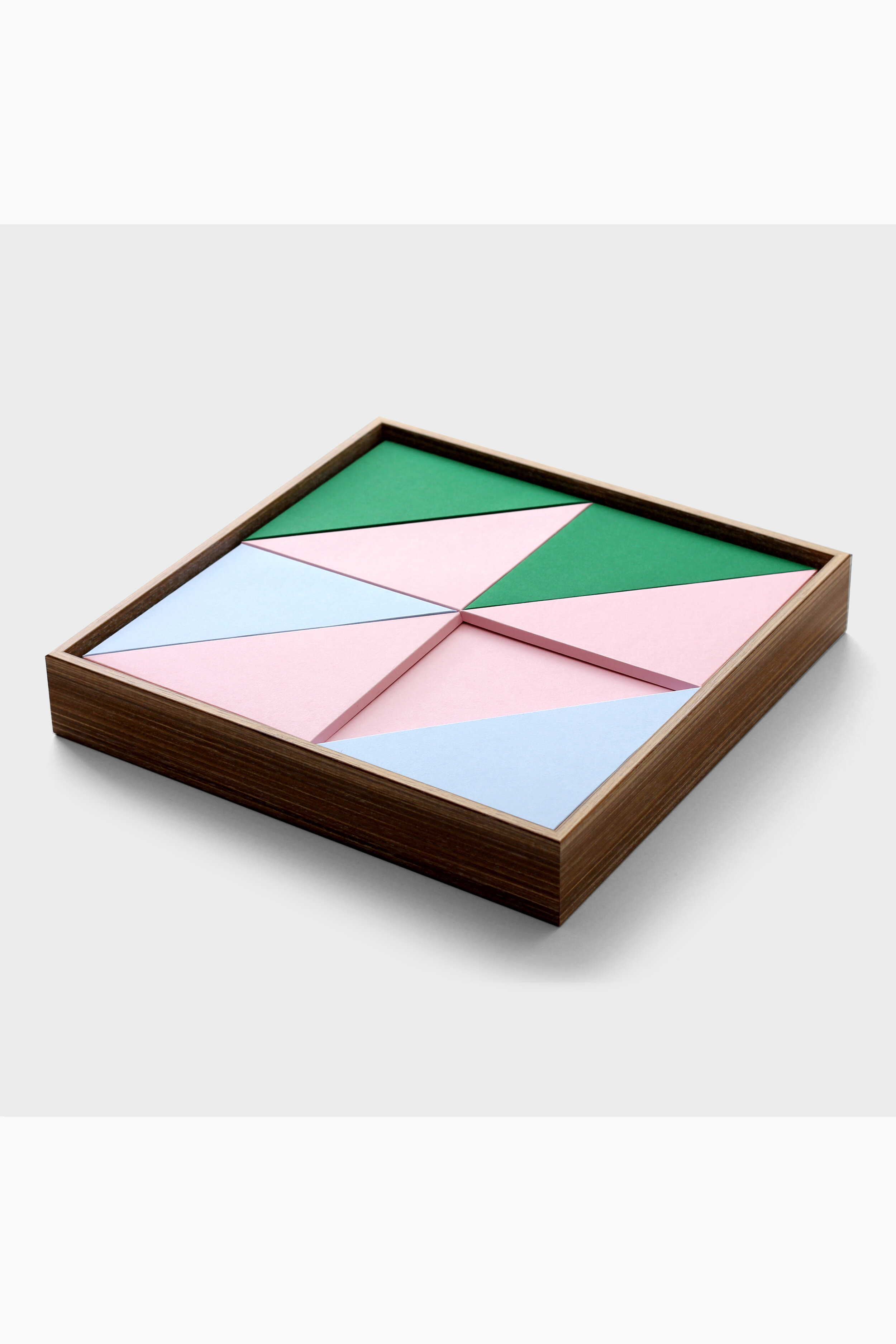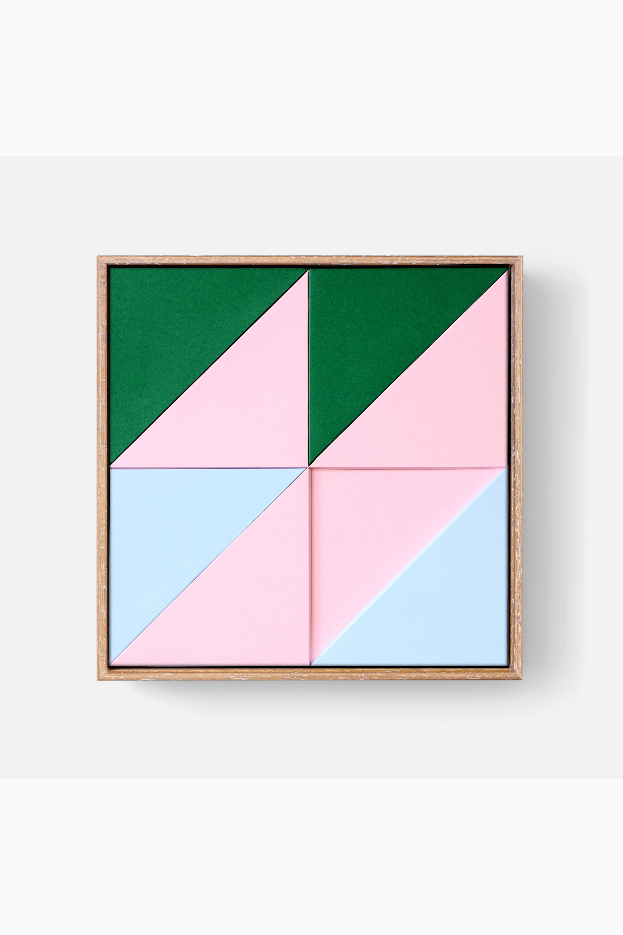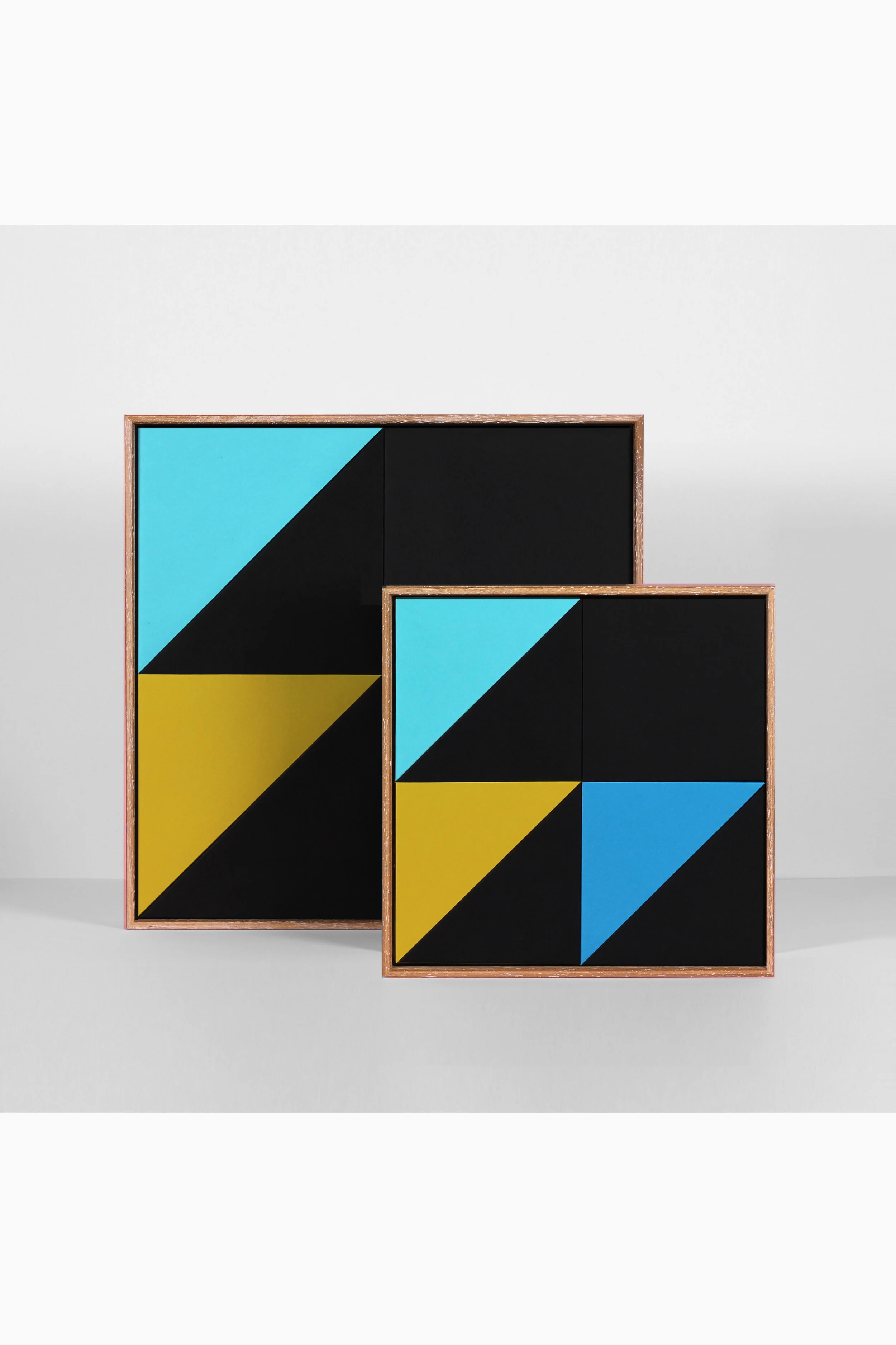 The result of conversation & collaboration between designer (Brian) and artist (Anna) and their shared appreciation for the tactility of paper. Brian’s role involves the generation of compositions and the space between the pieces. Anna works with a focus on colour and ensuring each piece is a statement in its own right. Like much of the work, these framed pieces occupy a space somewhere between art and design.
